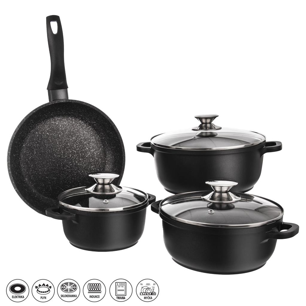 Sada riadu, 7 dielov – masívne hrnce s pokrievkou a panvica s veľmi kvalitným nepriľnavým povrchom PFLUON GRANIT.