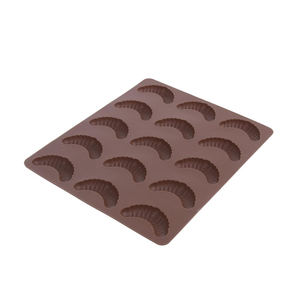 Silikónová forma v tvare rožtekov, v ktorej si upečiete 15 kusov rožtekov. Dá sa však použiť aj na prípravu čokoládových či želatínových dobrôt. Jej výhodou je, že sa vvám pri pečení cesto nepripáli a rožteky ľahko vyklopíte. Materiál: silikón – odolný teplotám od -40 °C do +220 °C. Rozmery: 24,5x21x1,2 cm, dĺžka rožtekov 5,5 cm.