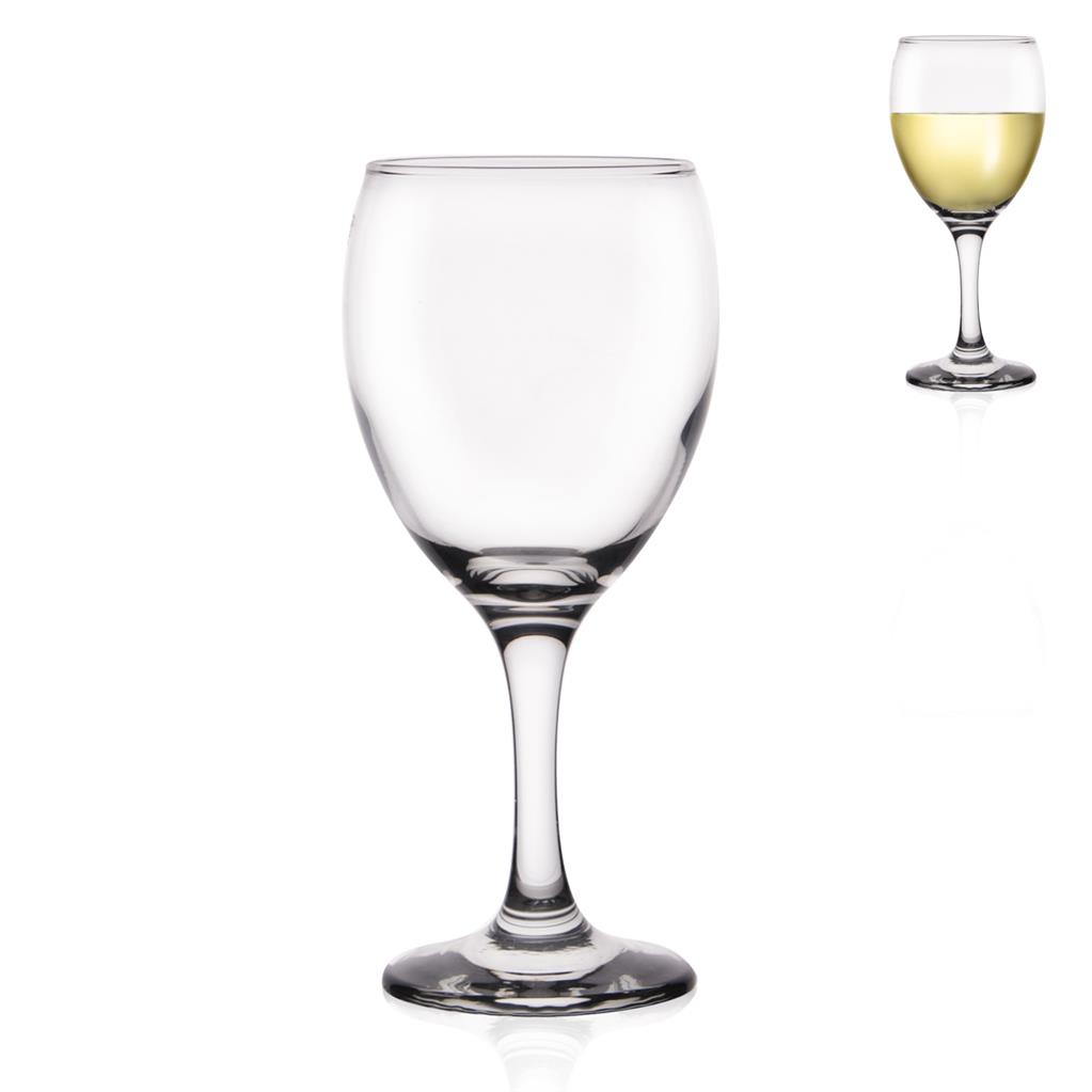 Vysoký sklenený pohár je na stopke, môžete v ňom servírovať víno a iné nápoje. Je vyrobený zo skla. Objem: 0,34 l