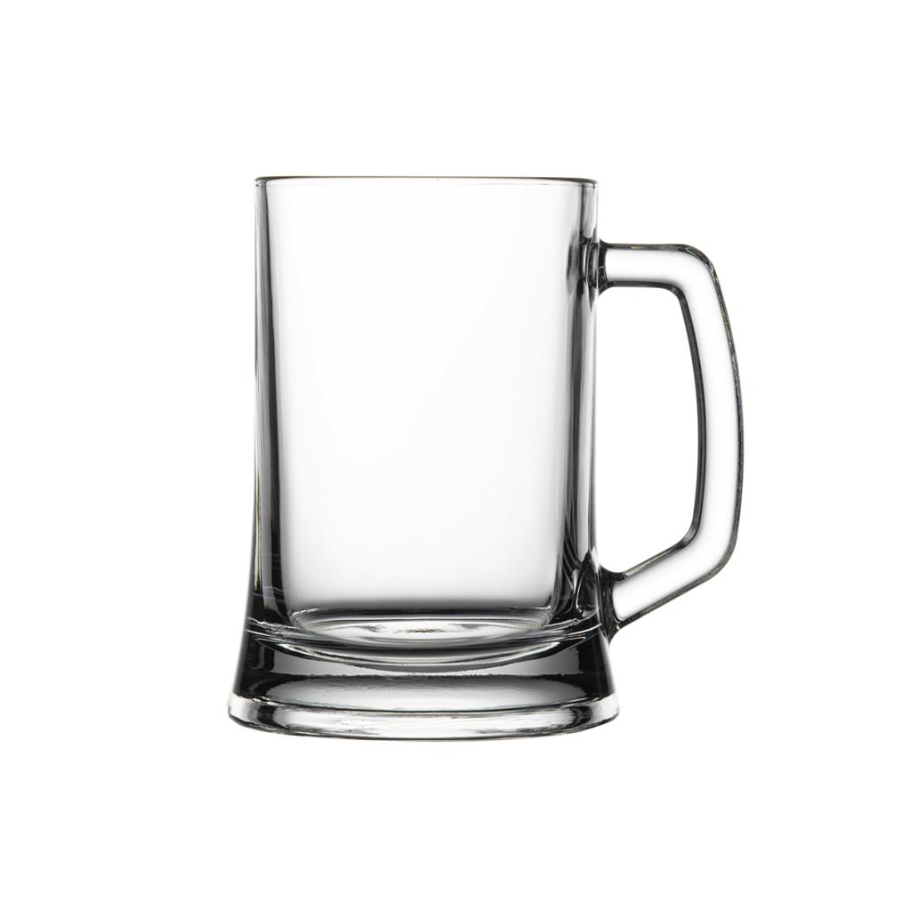 Sklenený pohár so skleneným uchom je určený na pivo. Je vyrobený zo skla. Objem: 0,5 l