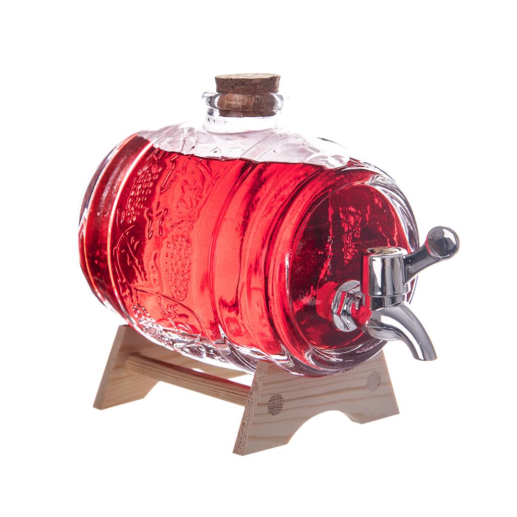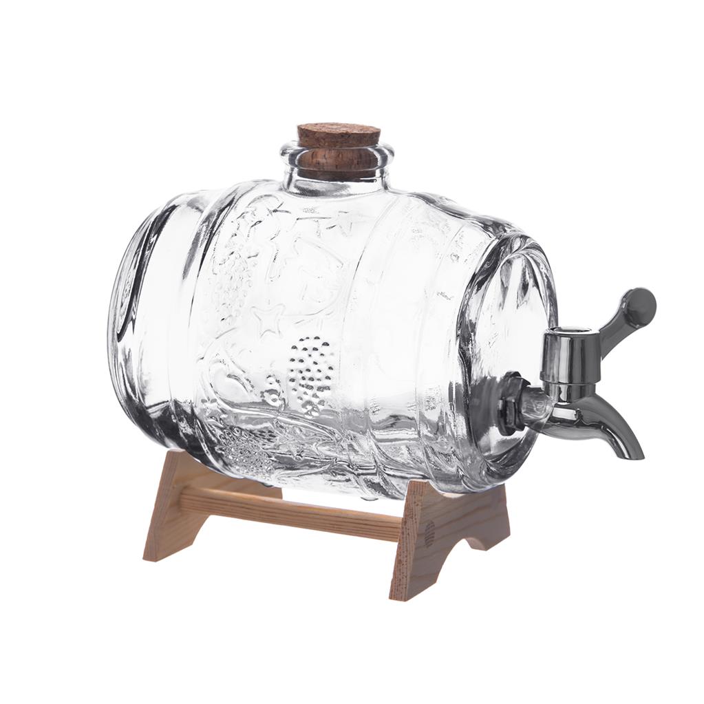 Sklenený súdok, na podávanie osviežujúcich limonád v letných dňoch pre deti alebo na radu miešaných nápojov pre dospelých. Výhodou je kohútik, s ktorým ľahko nalejete svoj obľúbený nápoj do pripraveného pohára. Stačí páčku pootočiť o 90°. Nádobu pred prvým použitím treba dôkladne umyť teplou vodou a saponátom. Tento postup treba opakovať pred každým použitím. Nádoba nie je vhodná pre horúce a vriace tekutiny. Materiál: sklo, plast, silikón, drevo. Rozmery: objem 1 l, priemer súdku 12 cm, celkové rozmery 12x21x16 cm.
