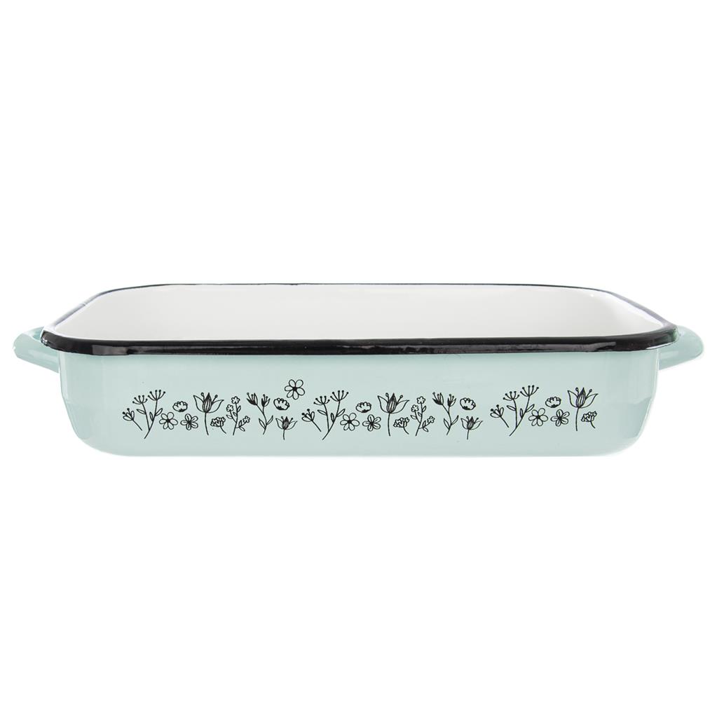 Smaltový zelený pekáč s motívom LÚKA 34×22 cm