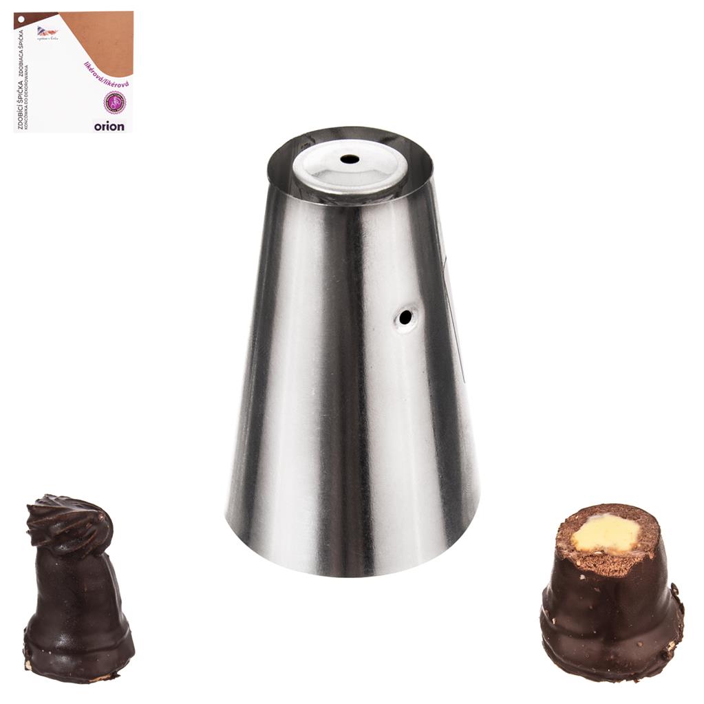 Aj doma môžete profesionálne pripraviť obľúbené likérové špice. Pri ich plnení vám pomôže likérová špička špeciálneho tvaru. Po použití ju stačí prepláchniť pod tečúcou vodou. Nie je vhodná do umývačky riadu. Materiál: potravinársky pocínovaný plech. Rozmery: vnútorný priemer 18 mm, vonkajší priemer 26 mm, výška 6,5 cm.