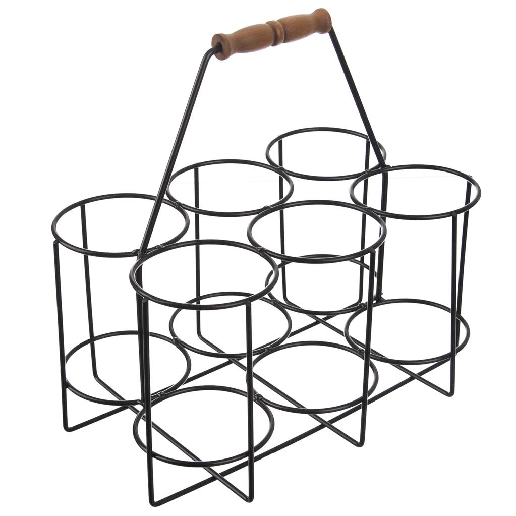 Stojan kovový na 6 pivových fliaš, alebo 6 pohárov, s drevenou rúčkou
