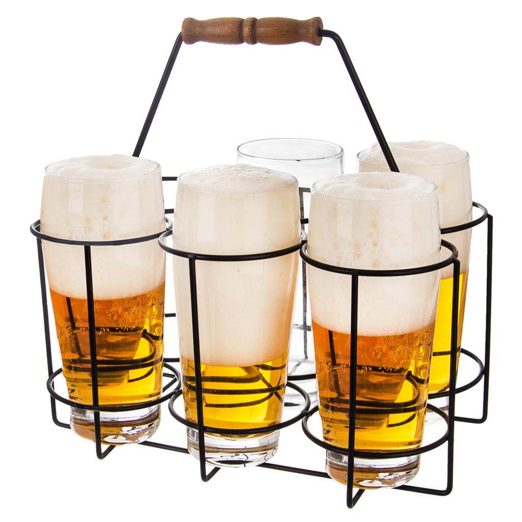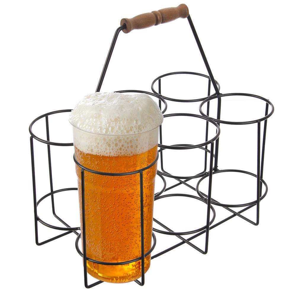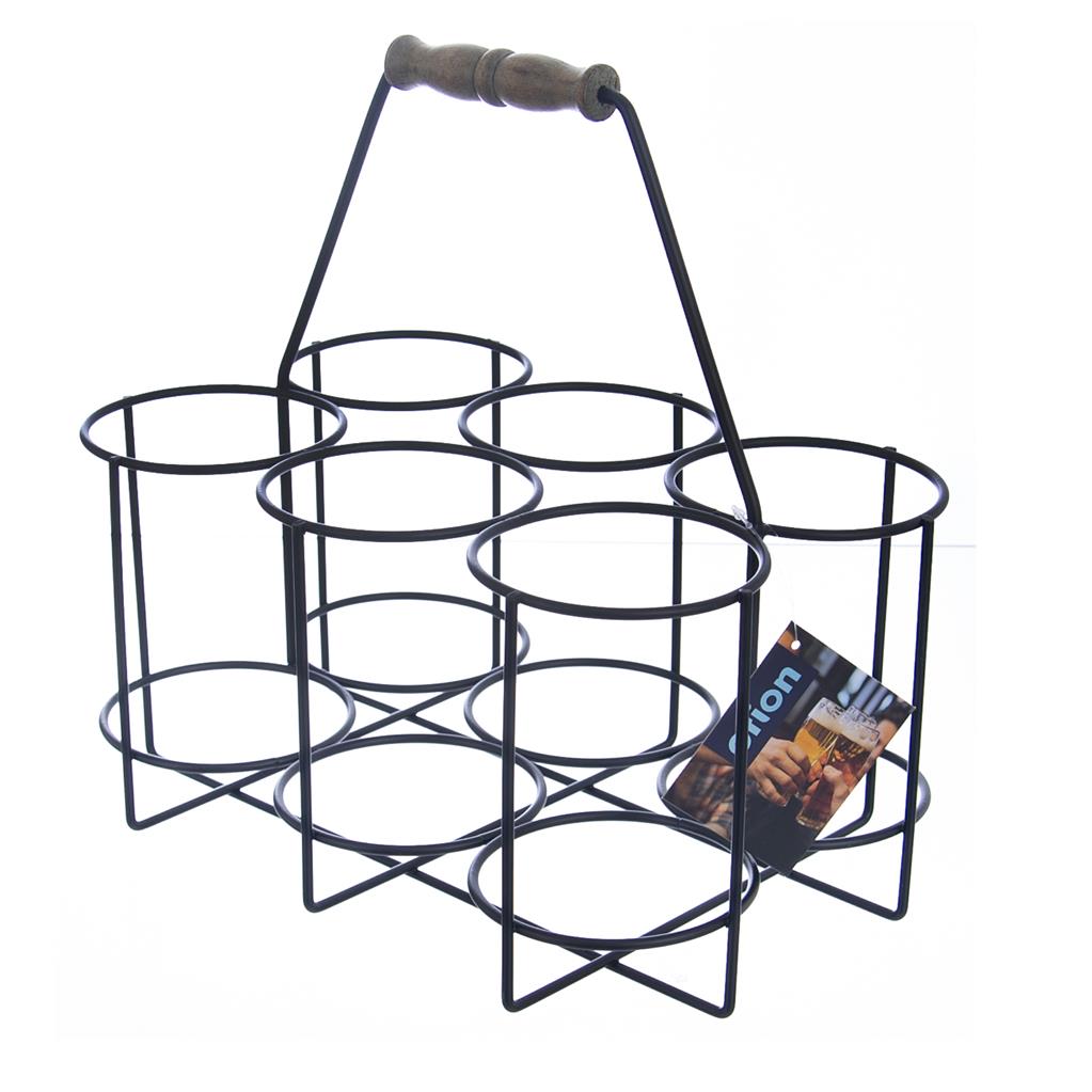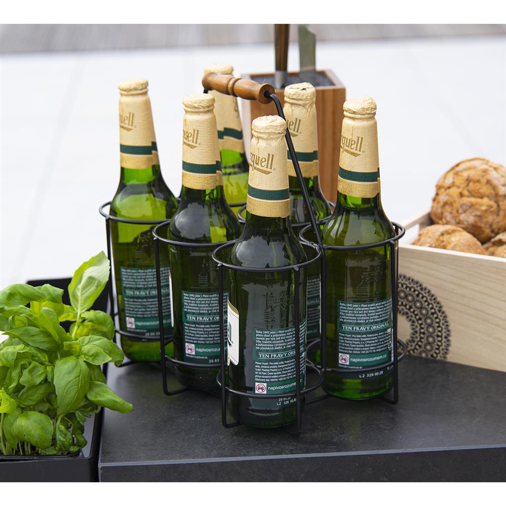 Stojan na pivové fľaše alebo na poháre s pivom je vyrobený z povrchovo upraveného kovu. Obsahuje 6 otvorov do ktorých môžete pohodlne nápoje uložiť a preniesť