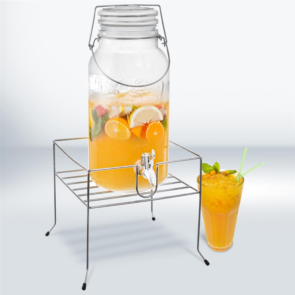 Stojan na fľaše s priestorom na kohútik je vyrobený z pochrómovaného kovu. Je vhodný na hranaté či guľaté fľaše. Ľahko sa udržiava a jeho výhodou je že nezaberie veľa miesta.
