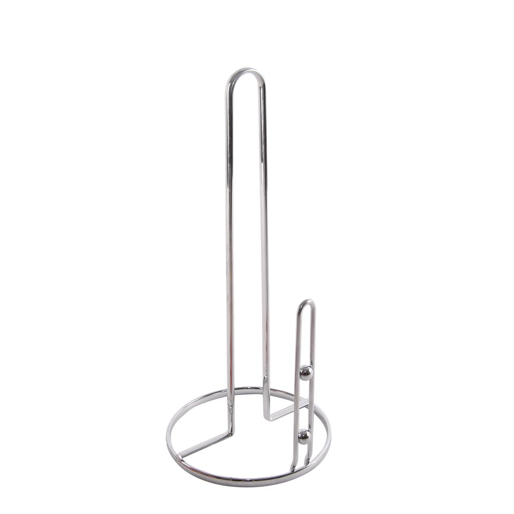 Stojan na papierové utierky je vyrobený z kvalitného pochrómovaného kovu. Je veľmi jednoduchý a praktický. Keďže je voľne stojaci a netreba ho upevňovať na stenu, zaleží len na Vás kde mu nájdete vhodné miesto. Vhodný doplnok do každej kuchyne, na terasy či do záhradného altánku. Rozmery: výška 30,5 cm, priemer 14 cm.