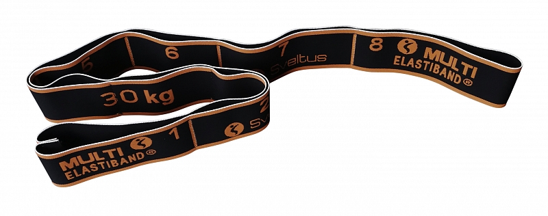 Multi Elastiband® sa skladá z dvoch veľkých slučiek 16,5 cm na každom konci pre ľahké zapínanie stehien alebo obuvi a štyroch stredných slučiek po 11 cm. Celková dĺžka: 110 cm. Inovatívnejšie, multi Elastiband® kombinuje všetky výhody Maxi Elastiband® (väčšie slučky, veľká dĺžka) a Elastiband ® (celkom 8 slučiek).