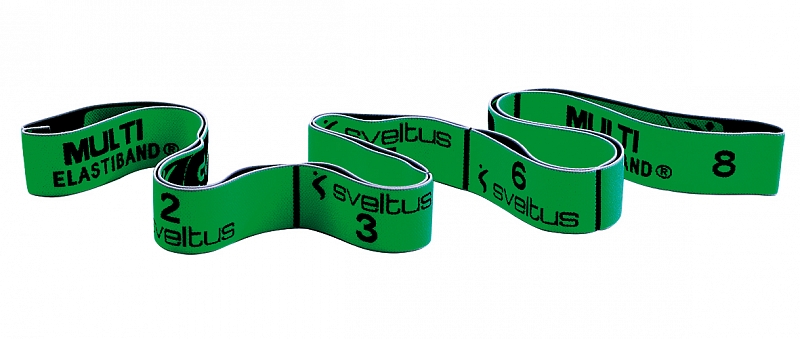 Multi Elastiband® sa skladá z dvoch veľkých slučiek 16,5 cm na každom konci pre ľahké zapínanie stehien alebo obuvi a štyroch stredných slučiek po 11 cm. Celková dĺžka: 110 cm. Inovatívnejšie, multi Elastiband® kombinuje všetky výhody Maxi Elastiband® (väčšie slučky, veľká dĺžka) a Elastiband ® (celkom 8 slučiek).