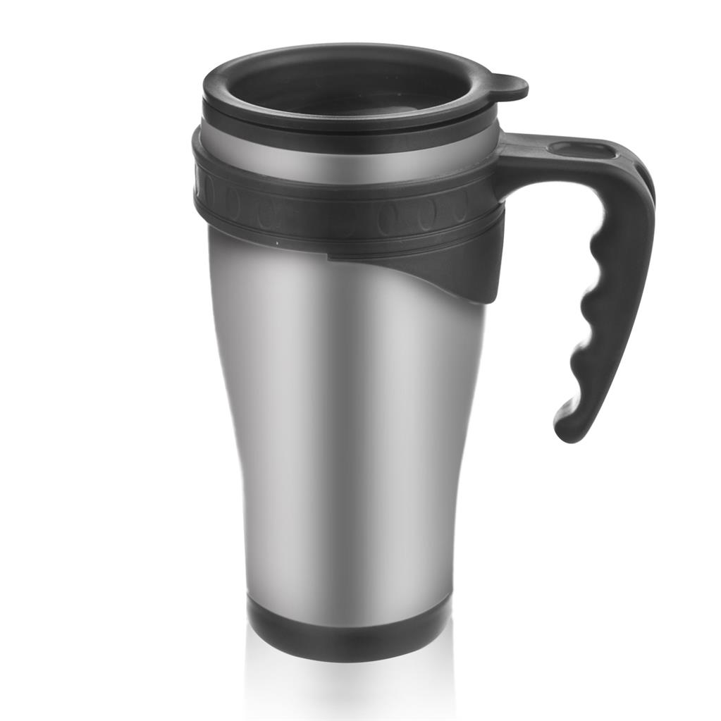 Termo hrnček v tvare pohára s uchom je praktický či už pri cestovaní, alebo bežnom oddychu. Nápoj si v ňom udrží stálu teplotu a vy si ho môžete vychutnať doma alebo v práci. Je ideálnym spoločníkom pri relaxe. Plastové viečko je na závit, a otvor na pitie je uzatvárateľný. Termo hrnček nie je vhodný do umývačky riadu. Rozmery: priemer 9 cm, výška 17,5 cm, objem 0,47 l.