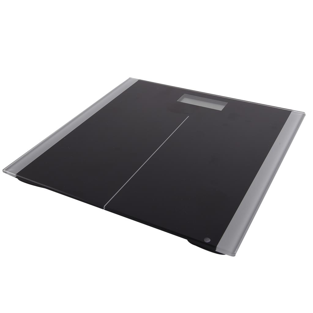 Osobná váha s digitálnymi funkciami so sklenenou nášľapnou plochou v čiernej farbe. Poslúži na bežný prehľad o vašej hmotnosti v každodennom živote, v obdobiach redukcie nadváhy alebo naopak keď sa snažíte pribrať na hmotnosti. Nosnosť 180 kg, presnosť 100g, veľký čitateľný displej, zapínanie dotykom nohy na ploche váhy, indikátor slabej batérie. Napájanie – 2x 1,5 V AAA batérie (nie sú súčasťou). Rozmery: 30x30x2 cm.