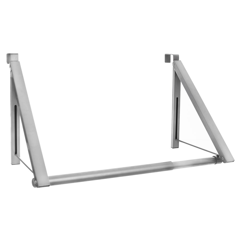 Vešiak na dvere kovový, nastaviteľný sa dá zavesiť na všetky tipy dvier, ktoré nie sú hrubšie ako 4 cm. Netreba nič vŕtať, stačí ho jednoducho zavesiť. Nezaberie veľa miesta a ľahko sa s ním manipuluje. Praktický pomocník do každej domácnosti. Veľmi ľahko sa udržiava. Rozmery: nastaviteľná šírka 44 až 60 cm (3 polohy), výška 32 cm, hĺbka 28 cm,