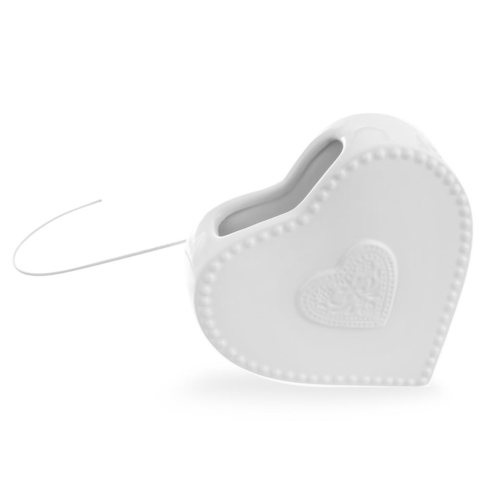 Keramický výparník v tvare srdiečka, Vám jednoducho zvlhčí vzduch v miestnosti počas vykurovacej sezóny. Stačí doň naliať vodu, a za pomoci háčika zavesiť na radiátor. Materiál: keramika, drôt. Rozmery: 13,5×3,5×13,5 cm.
