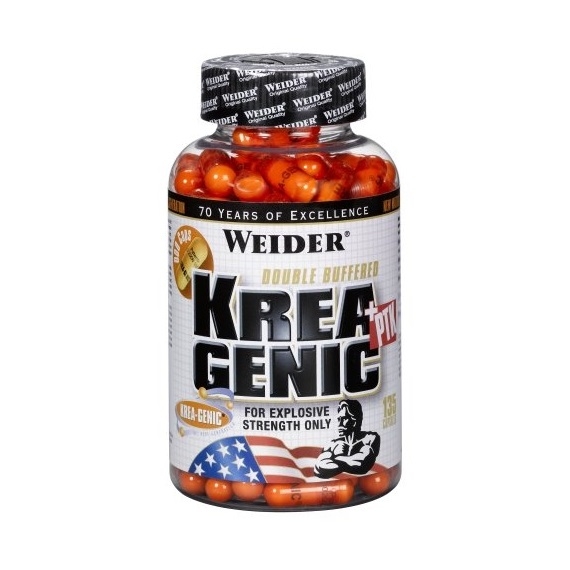 Špičkový výrobok KREA-GENIC + PTK (booster) obsahuje tzv. Double Buffered Creatine Krea-Genic, čo je najnovší patent firmy Weider v oblasti produkcie keratínových doplnkov. Jedná sa o najčistejší keratín na trhu! Na rozdiel od bežných kreatínových výrobkov, Krea-Genic je obsahuje dve vrstvy pre väčšiu stabilitu a lepšie výsledky. Žalúdočná kyselina bežný kreatín rozloží, Double Buffered kreatín však ostáva v žalúdku aj v krvi a vstrebáva sa do svalov takmer bez strát. Je totiž chránený dvoma vrstvami pre väčšiu stabilitu a rýchlejšie výsledky. 1000 g látky Krea Genic v každej kapsule je zaručene neobsahuje žiadne neúčinné prídavky. Prípravok vám pomôže zlepšiť inzenzitu výkonu a dopomôže k prírastku svalovej hmoty. Zbytočne ozganizmus nezavodňuje. Funguje na základe suplementácie kreatínom = nevzniká neúčinný kreatinín. Taktiež zamedzuje tvorbe kyseliny mliečnej.