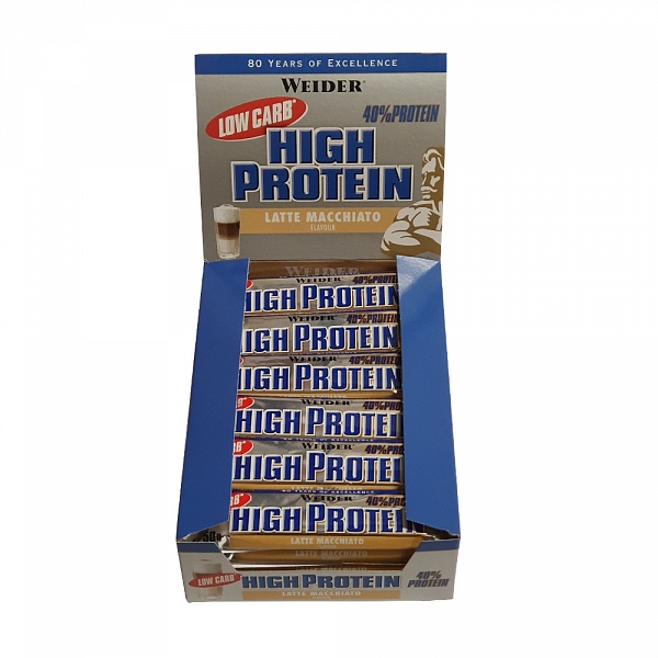 Weider Low Carb High Protein Bar 24 x 50 g, latte macchiato