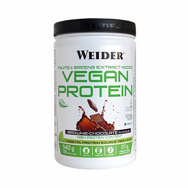 Weider Vegan Protein sa pýši obsahom z čistých a prirodzených proteínov bez lepku a laktózy. Na získanie bielkovín z rastlinných zdrojov sa nevyužívajú chemické rozpúšťadlá ako hexán. Tento vegánsky produkt má podobné nutričné zloženie ako proteín zo srvátkových bielkovín.