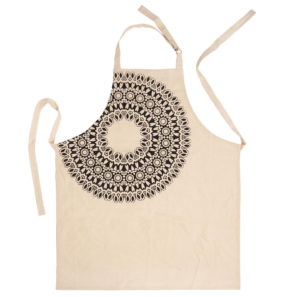 Zástera kuchynská s dekorom MANDALA je vyrobená z kvalitnej látky. Chráni Vaše oblečenie pri príprave jedla. Manipulácia s ňou je veľmi jednoduchá a jej praktickosť ocení určite každá gazdinka. Na zaväzovanie v páse. Dá sa prať v práčke. Materiál: balvna. Rozmery: šírka 70 m, dľžka 85 cm.
