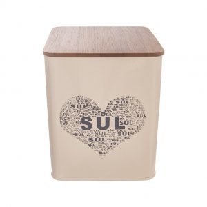 Plechová dóza hranatá s dreveným viečkom slúži na uloženie cukru, …