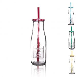 Sklenená fľaša STRAW s viečkom+slamkou 400 ml
