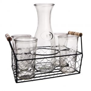 Sklenená Karafa so štyrmi pohármi a plastickým dekorom v kovovom …